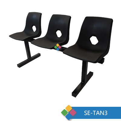 Banca Tándem de 3 plazas, asiento de concha para adulto en plástico polipropileno, perfil PTR cuadrado de 2×1” calibre 18. Pintura horno color negro.