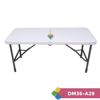 Mesa plegable estructura metálica, pintura electroestática en terminado Jaspeado endurecida por proceso de plimedizacion plataforma en polietileno de alta densidad para interiores y exteriores.