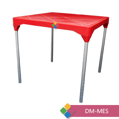 Mesa Cuadrada de plástico en inyección,  patas desarmables en tubo de aluminio de 1″.