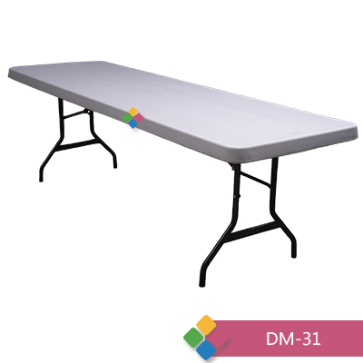 Tablón plegable estructura metálica, pintura electroestática en terminado jaspeado endurecida por proceso de plimedizacion plataforma en polietileno de alta densidad para interiores y exteriores.