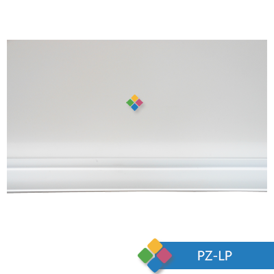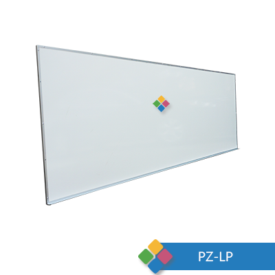 Fabricado con laminado plástico blanco brillante adherida a un MDF de 6 mm. con múltiples soportes en la parte posterior del mismo material, marco perimetral de aluminio y porta gis.